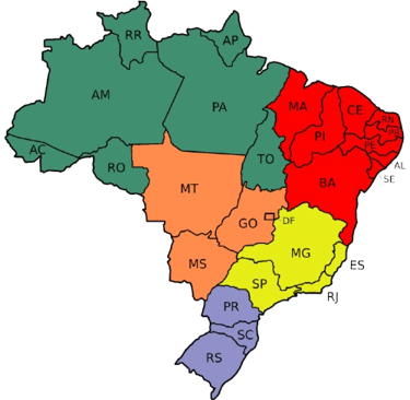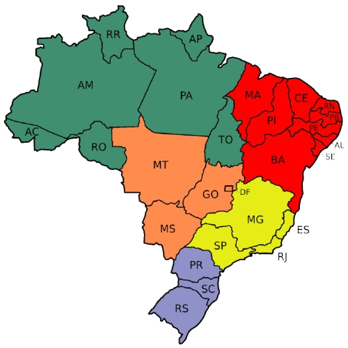 Acre, Rio Branco, Alagoas, Maceió, Amapá, Macapá, Amazonas, Manaus, Bahia, Ceará, Brasília, Espírito Santo, Goiás, Maranhão, São Luís, Mato Grosso, Cuiabá, Mato Grosso do Sul, Campo Grande, Minas Gerais, Belo Horizonte, Pará, Belém, Piauí, Teresina, Rio de Janeiro, Rio Grande do Norte, Natal, Rio Grande do Sul, Porto Alegre, Rondônia, Porto Velho, Roraima, Boa Vista, Santa Catarina, Florianópolis, São Paulo, Sergipe, Aracaju, Tocantins