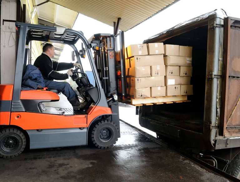 Realizamos a carga e descarga de veículos com caminhão munck e empilhadeira